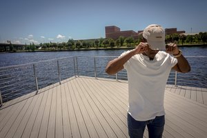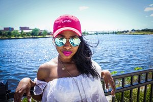 Finally! I received the shipment of my first batch of hats. The Lavish hats. I was so anxious to release the project I had been working so hard on. So one day, I went to lunch on the Riverwalk and I thought "this is the perfect place for a photoshoot". In one direction we had the beautiful Hillsborough River. The River was lined with the brand new "Riverwalk" project that connects the Tampa Heights neighborhood with downtown. In the other direction, there's the Water Works Park, a park with a children's splash pad and playground. And in the background, the historical Tampa Armature building which is currently under revitalization. The sun was shining, the water looked beautiful so just like that, we went from having lunch to having a photoshoot. Here are some photos we captured.